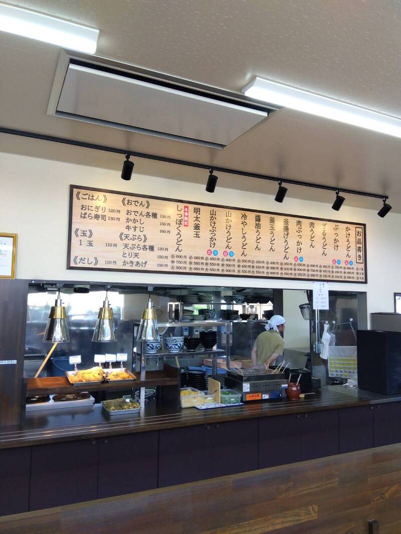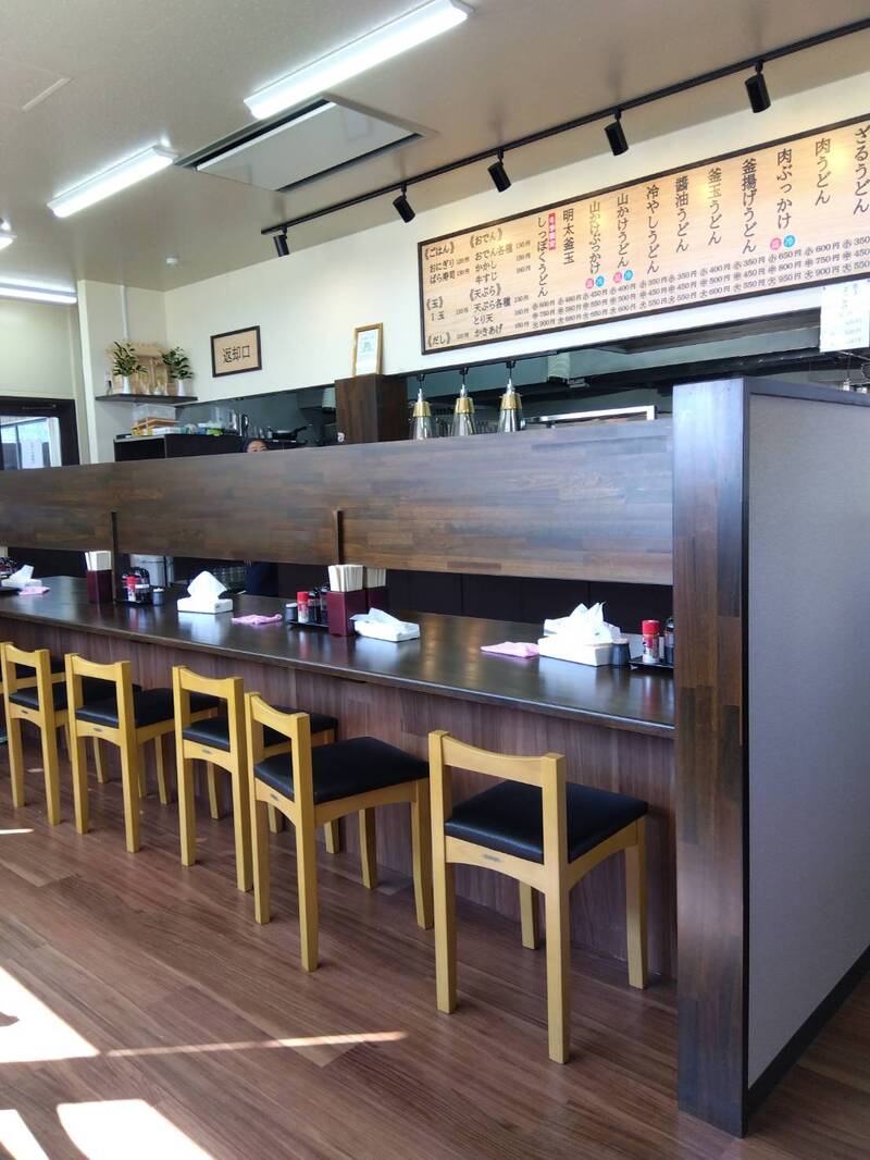 香南町から丸亀市に移転しました。カウンターの天板にレールを設置しセルフうどん仕様にしました。