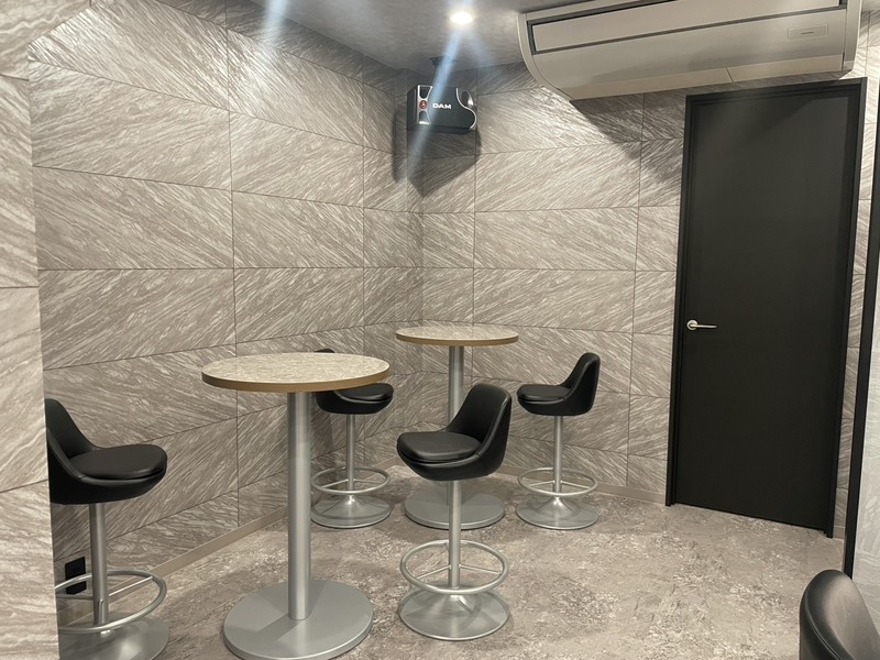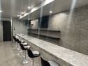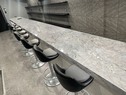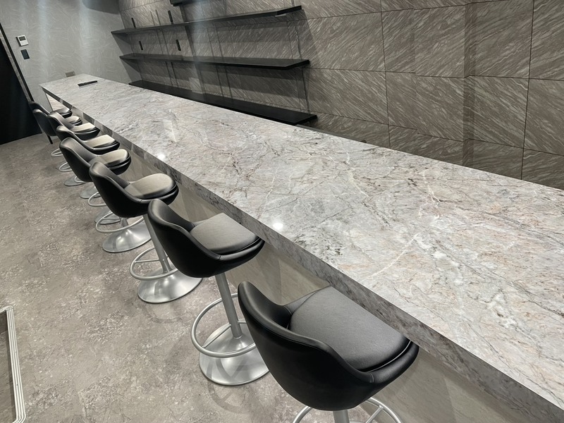 扉を開けたらすぐカウンターに目が行くよう天板を石目調の家具造りに。
